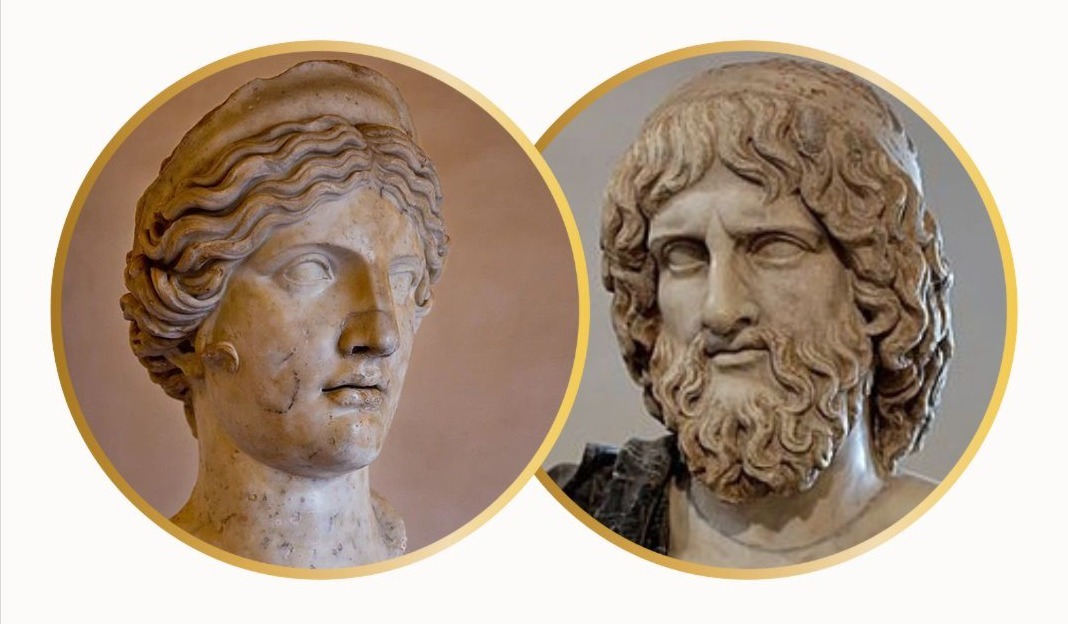 Dans la mythologie grecque, Hera est la déesse du foyer et de la vie familiale et Hadès, le dieu du séjour des morts.